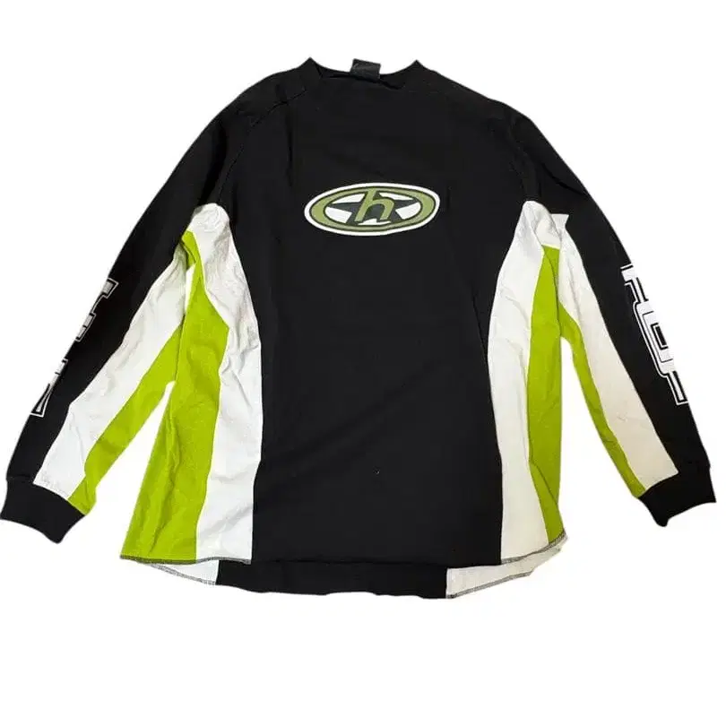 HUF의 컬러 블록 디자인 긴팔 티셔츠. - 브랜드: HUF - 디자인: 블랙, 그린, 화이트 컬러 블록 - 택: HUF RACING TEAM - 스타일: 긴팔 티셔츠 방문해 주셔서 감사합니다.