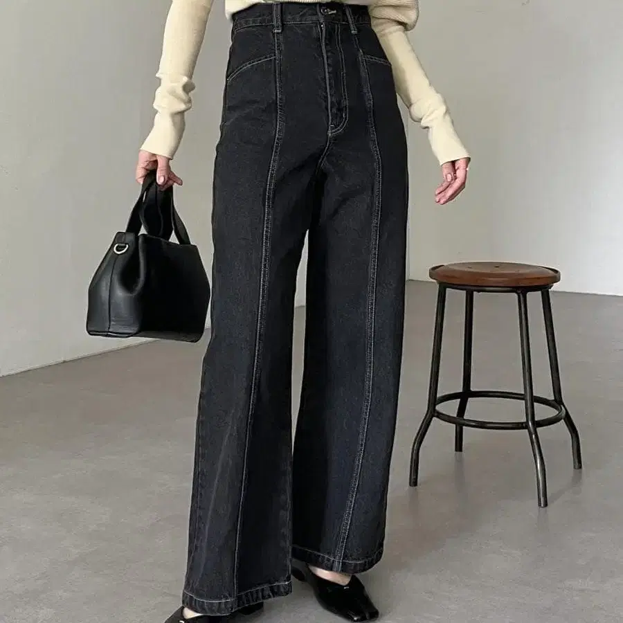 [ 새상품 ] 택 포함 청바지 데님 팬츠 하이웨스트 루즈 블랙