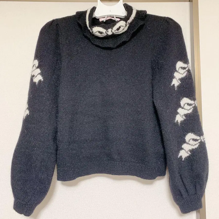 Honey Cinnamon 포인트 리본 어깨 트임 몰 니트