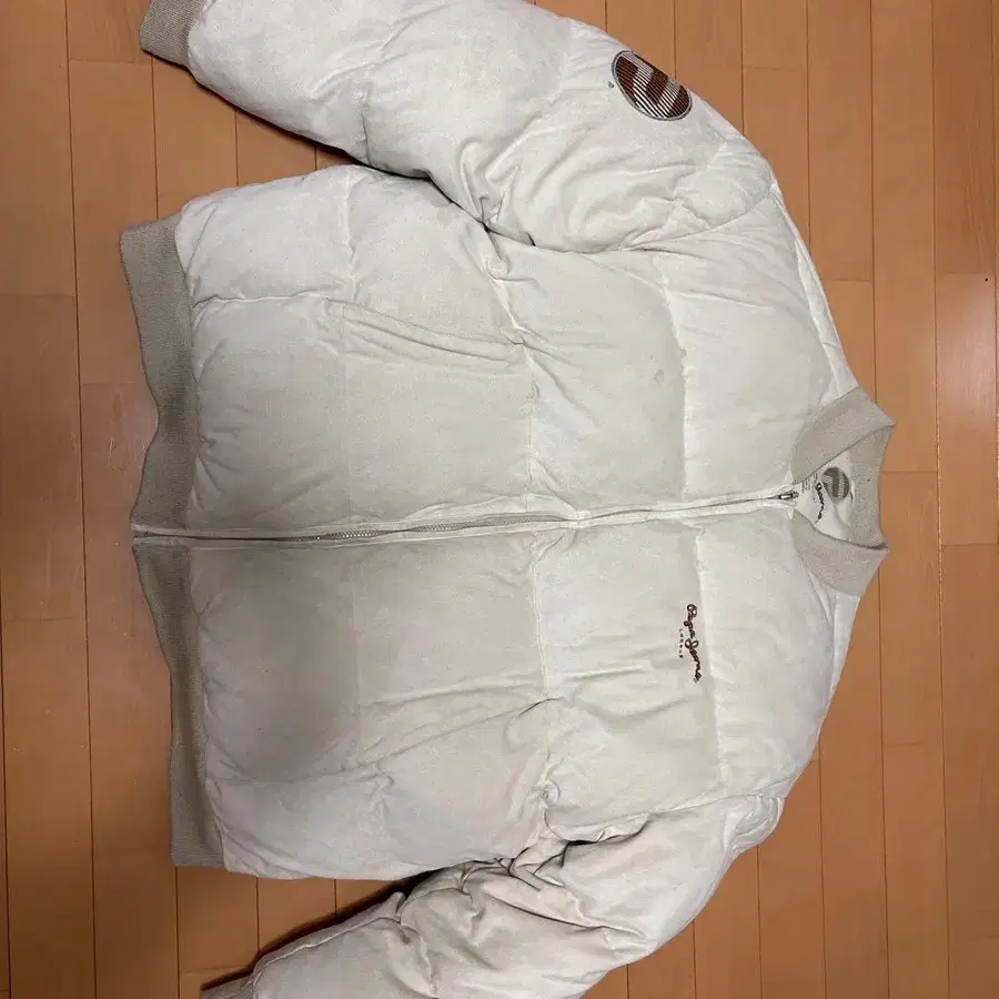 아이보리 다운 자켓, 로고 자수 포함, 풀 집업 사양. - 색상: 아이보리 - 디자인: 로고 자수 - 안감: 브라운 - 소재: 다운 충전 - 지퍼: 풀 집업 방문해 주셔서 감사합니다. 지퍼 부분이 약간 고장 났지만 40000에 구매한 옛날 레어템입니다. 가격 인하 가능합니다!