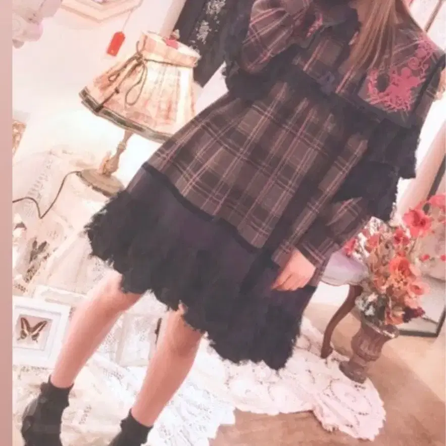 리본 플레드 Fkare 쇼트 재킷&원피스