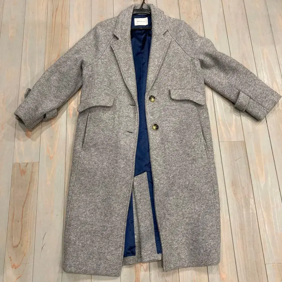 그레이 색상의 울 혼방 소재로, 더블 버튼과 프론트 포켓이 특징인 MOUSSY 코트입니다. - 브랜드: MOUSSY - 사이즈: 1 - 소재: 울 66%, 아크릴 19%, 폴리에스테르 15%, 안감 폴리에스테르 100% - 색상: 그레이 - 디자인: 더블 버튼, 프론트 포켓 부착 방문해 주셔서 감사합니다.