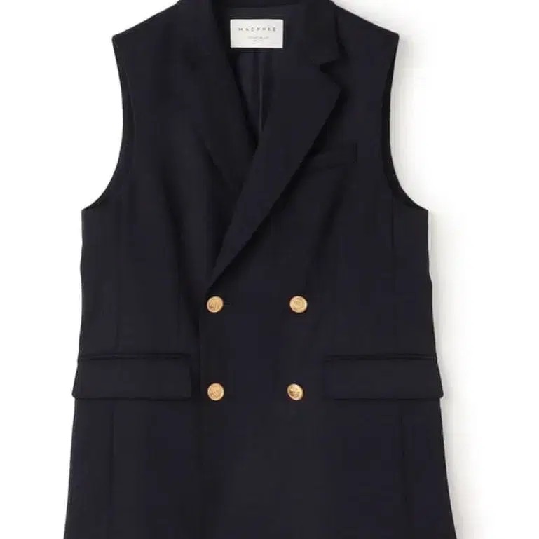 네이비 색상의 더블 브레스트 베스트로, 골드 버튼이 스타일리시합니다.