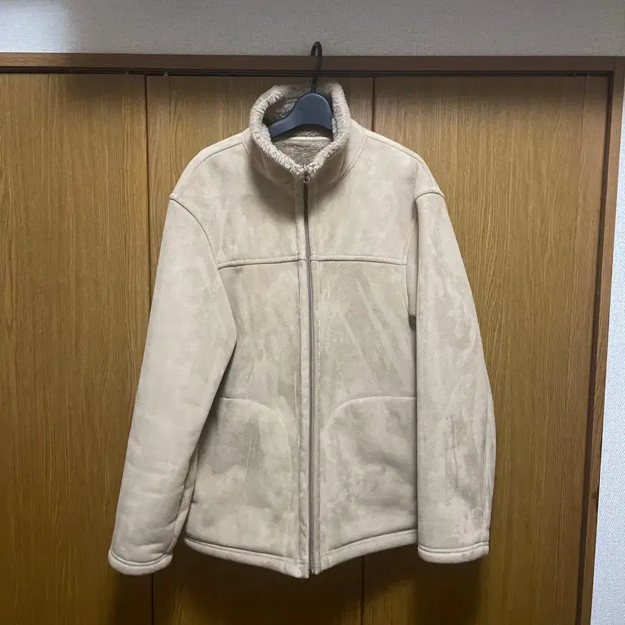 플리스 자켓 크림색 리버서블