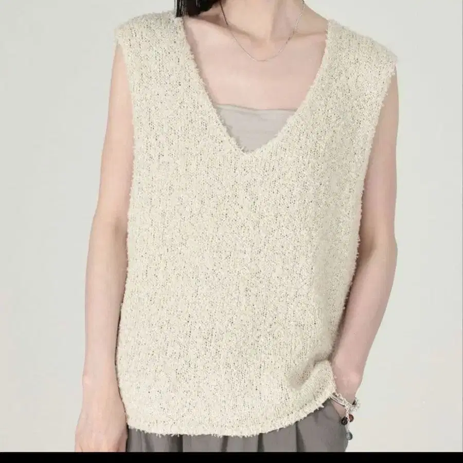겹쳐 입는 것만으로도 멋스러움을 더해주는 트위드 소재의 니트 베스트.