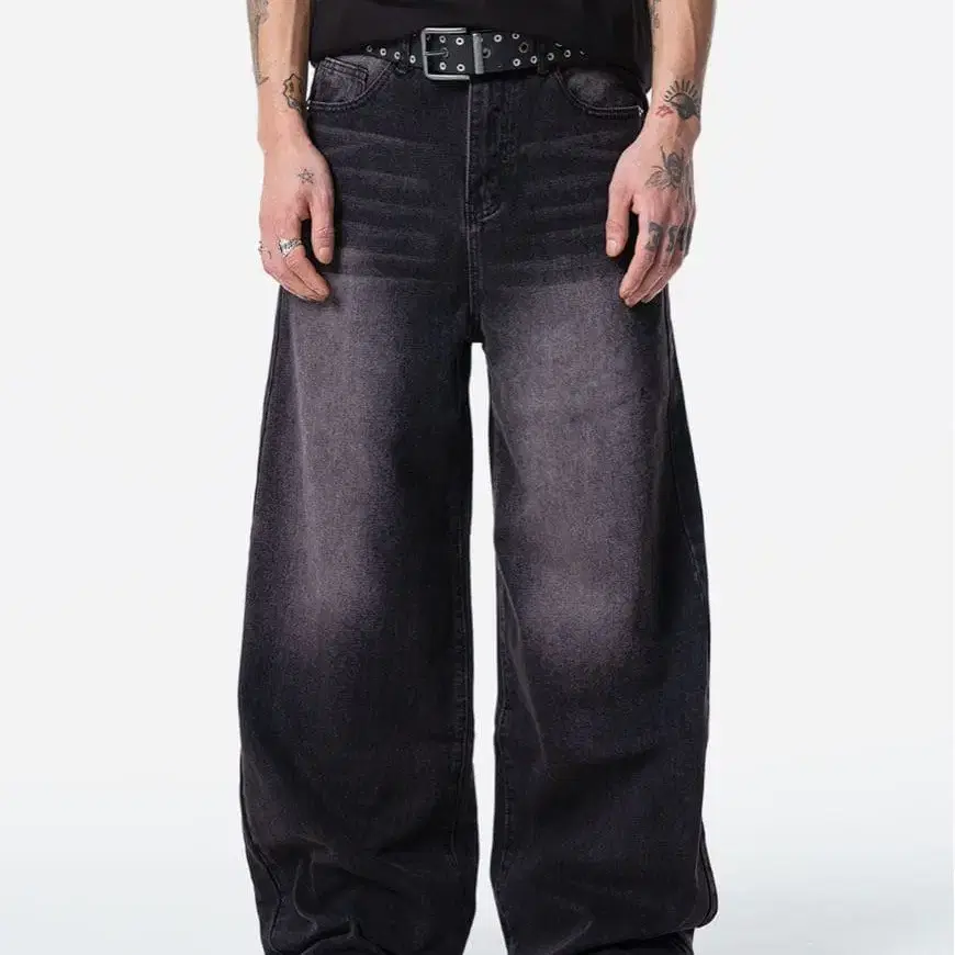 CAHLUMN 블랙 데님 배기 팬츠
