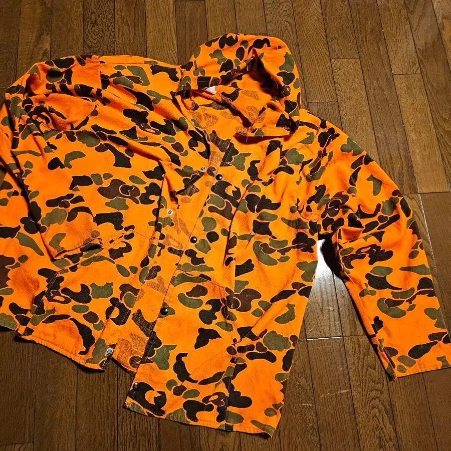 sno king 이라는 미국 브랜드의 자켓입니다. 컬러 ◇ 오렌지 카모플라쥬 패턴 사이즈 XL 평면 치수 측정 어깨 너비 57, 가슴 너비 66, 기장 74 보기 어렵지만 포켓이 있습니다. 남들과 다른 것을 찾으시는 분에게 최적입니다. 올드 빈티지