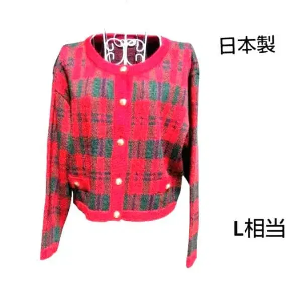 선명한 빨간색과 그린 체크 무늬에 클래시컬한 골드 버튼이 돋보이는 고급스러운 디자인입니다.