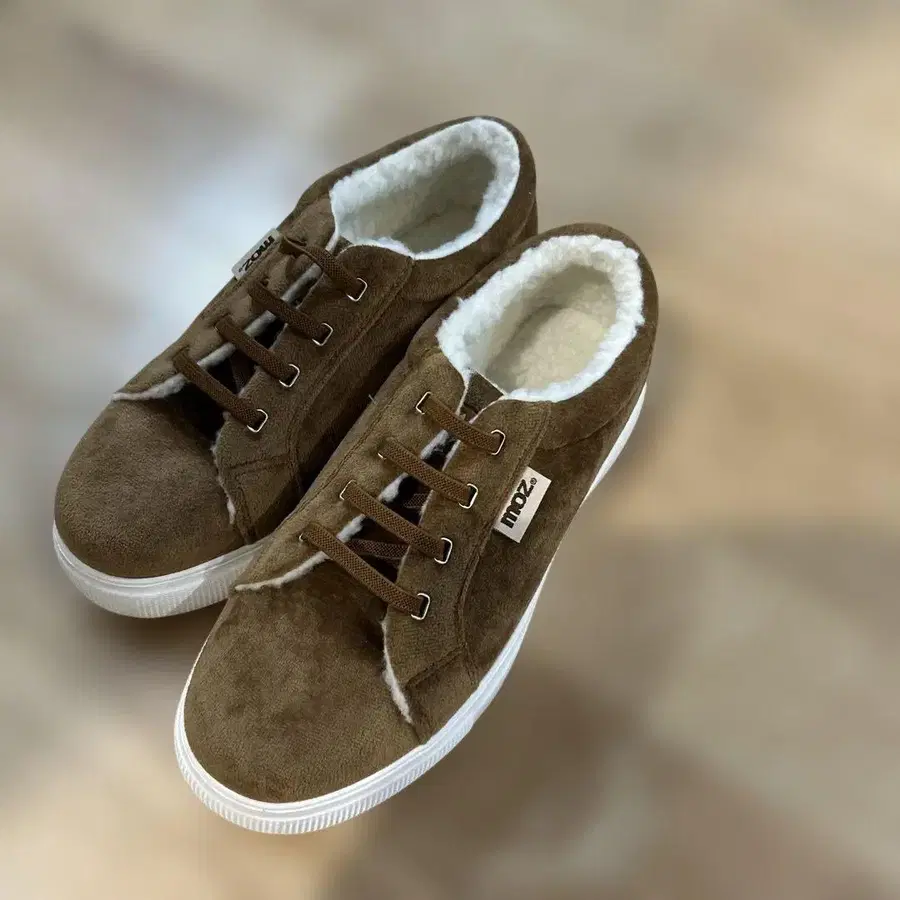 미사용 새상품 MOZ 브라운 스웨이드 스니커즈 퍼 포함