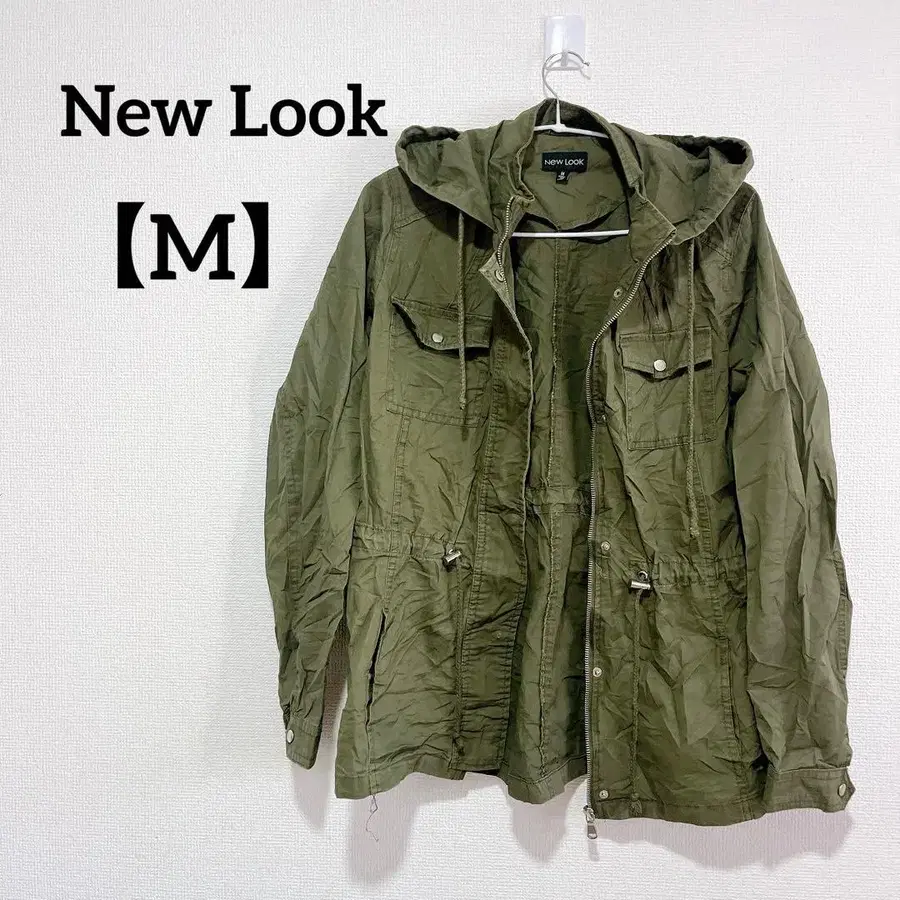 올리브 그린 후드 부착 밀리터리 자켓, 지퍼와 포켓 부착으로 실용적입니다.