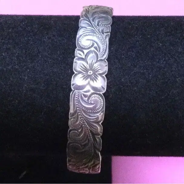 하와이안 주얼리 뱅글 플루메리아 꽃이 장식된 실버 뱅글. - 디자인: 꽃무늬 조각 - 소재: 실버 - 사이즈: 직경 약 6cm 방문해 주셔서 감사합니다. 자택 보관에 이해해 주시는 분의 구매를 부탁드립니다.