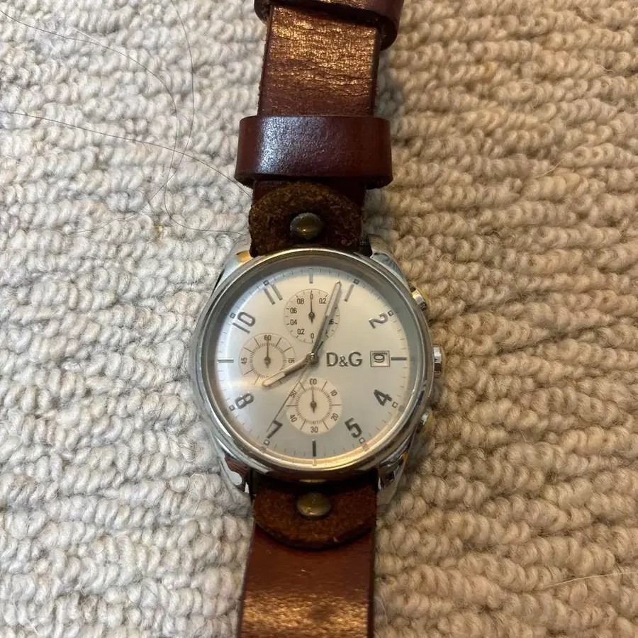 배터리 없음 D&G의 실버와 브라운 아날로그 크로노그래프 손목시계, 가죽 밴드 포함. - 브랜드: D&G - 색상: 실버/브라운 - 소재: 가죽/스테인리스 스틸 - 스타일: 아날로그/크로노그래프 - 디자인: 라운드 페이스 - 밴드 타입: 가죽 밴드 방문해 주셔서 감사합니다.
