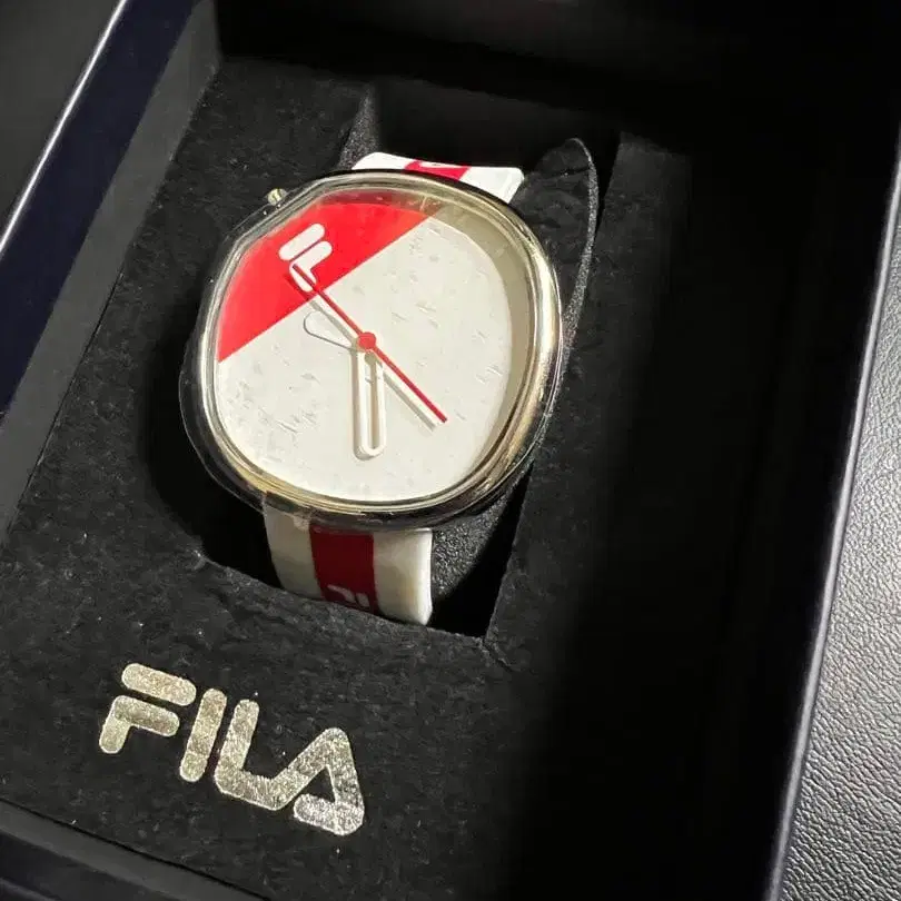 FILA의 화이트와 레드 색상의 아날로그 손목시계, 실리콘 스트랩 포함. - 브랜드: FILA - 색상: 화이트/레드 - 디자인: 아날로그 표시 - 스트랩 소재: 실리콘 - 사이즈: 프리 사이즈 - 부속품: 택 포함 - 뒷면 디자인: 로고 방문해 주셔서 감사합니다. #시계 #손목시계 #FILA