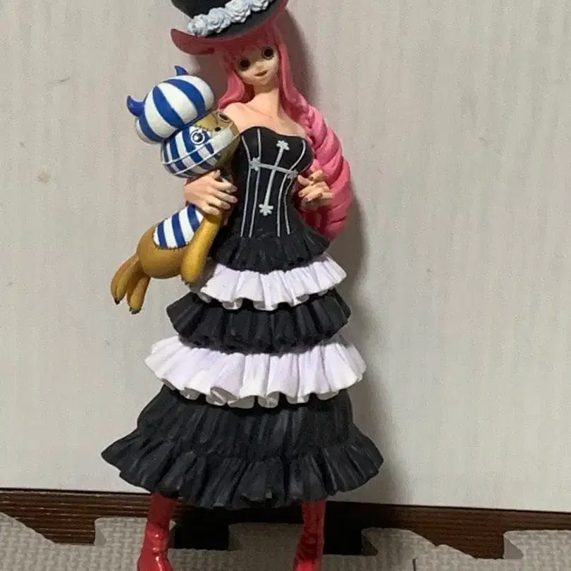 페로나 피규어, 화려한 드레스와 빨간색 부츠가 특징입니다. 원피스 페로나 피규어 현 상태품 - 캐릭터명: 페로나 - 의상 색상: 블랙, 화이트, 핑크 - 신발 색상: 레드 - 액세서리: 모자 - 소지품: 봉제 인형 방문해 주셔서 감사합니다.