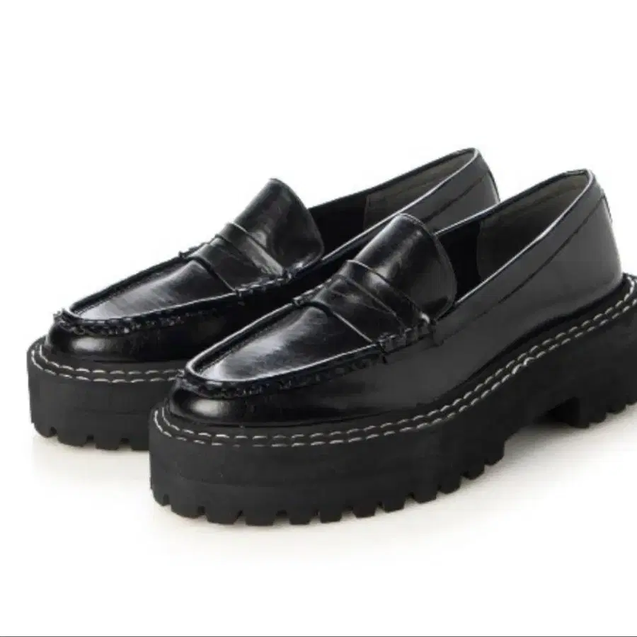 미사용 새상품 슬림 레그 효과 발군 통굽 로퍼 에나멜 블랙