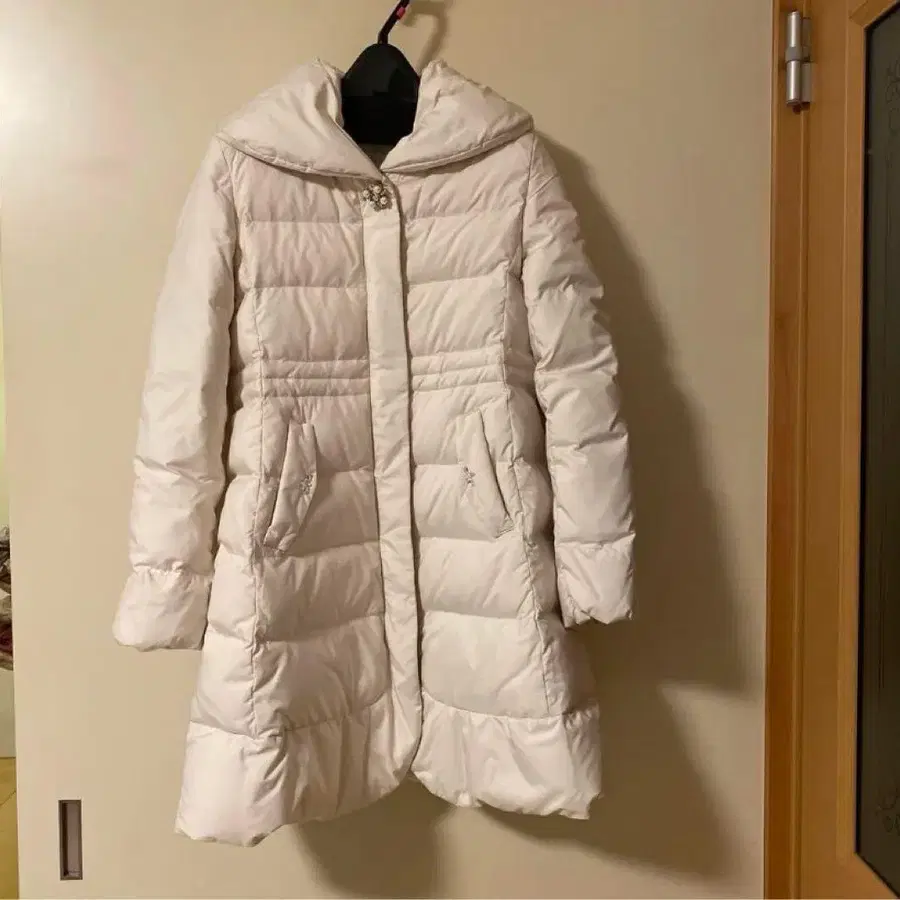 후드 부착 화이트 다운 자켓, 롱 기장으로 프론트 포켓 2개 부착. - 색상: 화이트 - 디자인: 후드 부착 - 포켓: 프론트 포켓 2개 - 스타일: 롱 기장 - 사이즈: 기장⇒82cm 어깨 너비⇒37cm 가슴 너비⇒37cm 방문해 주셔서 감사합니다.
