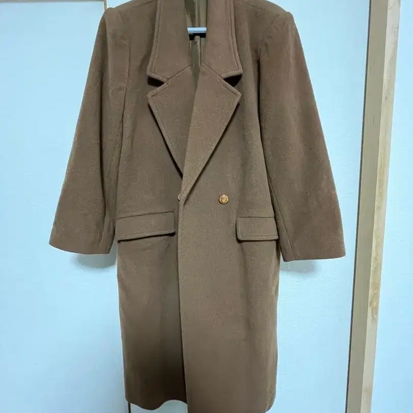 브라운 더블 브레스트 오버 사이즈 롱 코트