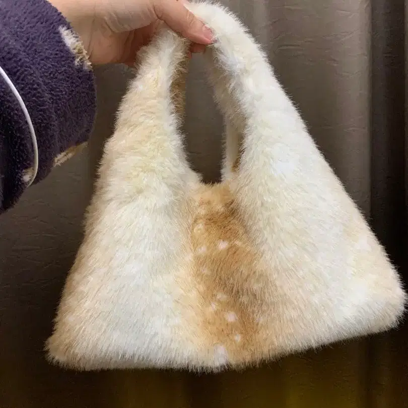[ 새상품급 ] 밀크페도 밤비 패턴 퍼 백 토트백 브라운 사슴