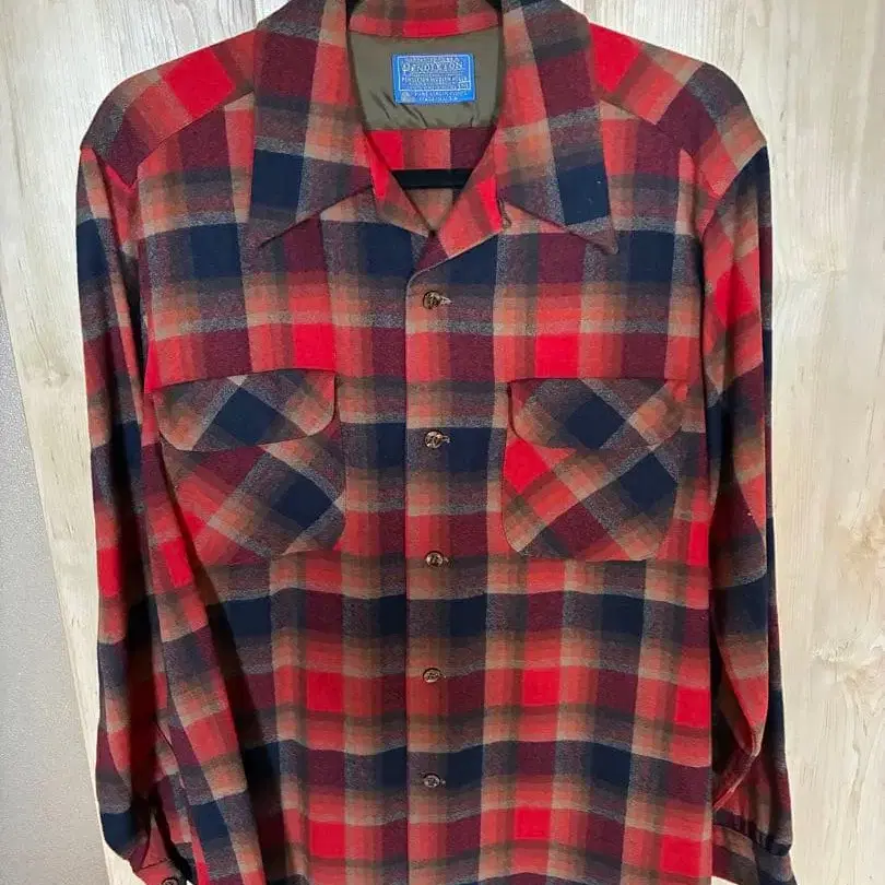 울 소재의 레드와 네이비 섀도우 체크 셔츠, M 표기이지만 L 사이즈 상당. - 브랜드: Pendleton - 연대: 70년대 - 색상: 레드/네이비/체크 - 소재: 울 - 사이즈: M 방문해 주셔서 감사합니다. 사이즈 실측치수 어깨 너비 49cm 가슴 너비 60cm 소매 길이 62cm 기장 73cm 데미지 등은 보이지 않지만, vintage인 점을 이해해 주시기 바랍니다. 본인, 신장 180cm, 몸무게 72kg, 비흡연자 클리닝 완료