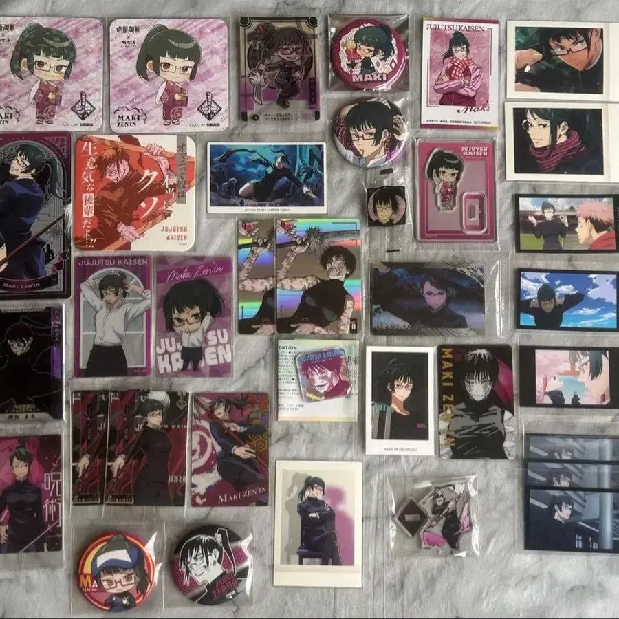 즉시 구매 ⭕️ 젠인 마키 굿즈 묶음 판매 종이류→양면 종이상자 보강 아크릴, 캔뱃지류→완충재 1겹