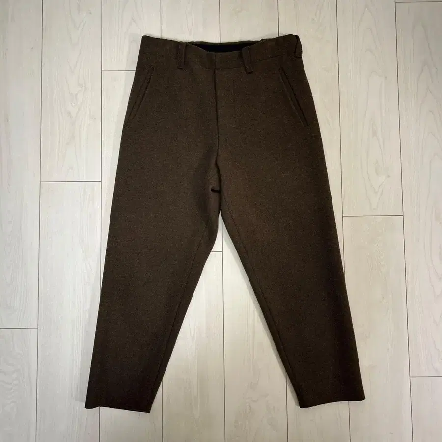 컷오프 멜톤 팬츠 브라운 19A58 울 100% 레어 사이즈 1입니다 행거 자국이 있습니다 그 외에는 시착 정도의 새상품급입니다