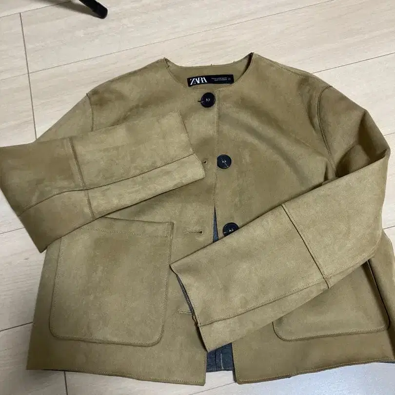 방문해 주셔서 감사합니다. 스웨이드 느낌의 베이지 노카라 자켓입니다. 2회 정도밖에 착용하지 않아 상태는 좋다고 생각합니다. - 브랜드: ZARA - 색상: 베이지 - 스타일: 노카라 자켓 - 소재: 스웨이드 느낌 - 포켓: 프론트 포켓 있음