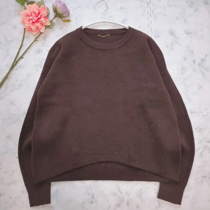 브라운 색상의 크루넥 니트 풀오버입니다.