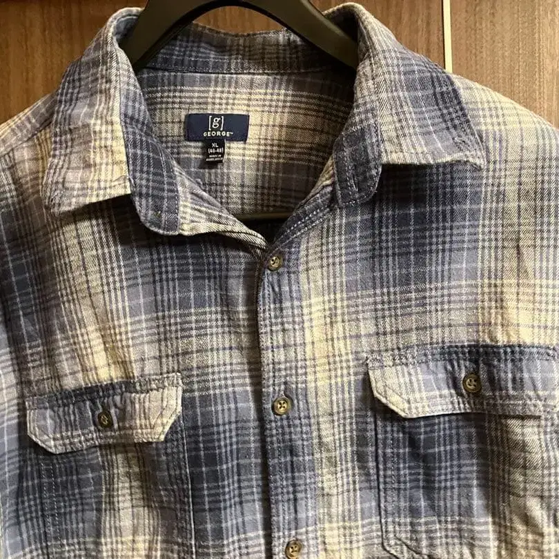 옴브레 (쉐도우) 체크 무늬 플란넬 셔츠, 쾌적한 착용감의 XL 사이즈.