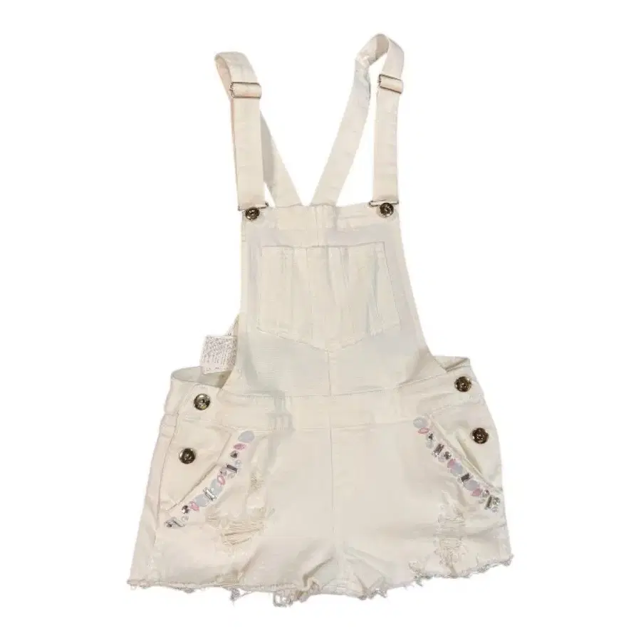 프레이드 엣지의 화이트 숏 오버롤, 장식적인 포켓 부착. - Color: White - Style: Short Overall - Details: Frayed edges, decorative pockets - Back Design: Crossed straps, multiple pockets 방문해 주셔서 감사합니다. 사이즈 - 3