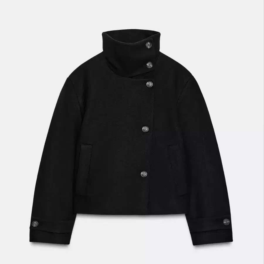 하이넥 코트 블랙 새상품 루즈핏 스냅 버튼