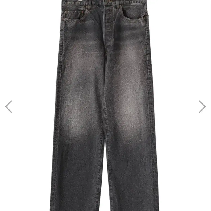 시착만 한 미사용품입니다. 사이즈는 3. 175cm 63kg에 저스트입니다. 색상은 설퍼 블랙 (자세히는 모르겠지만, 워시 가공된 블랙 같은 느낌입니다.) 실루엣은 스탠다드한 스트레이트 실루엣입니다. 정가 39,600엔.