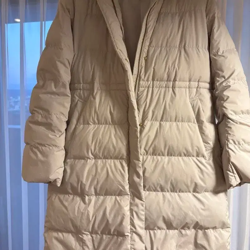 ZARA 아이보리 후드 부착 롱 다운 자켓 코트 L, 가격 인하 가능
