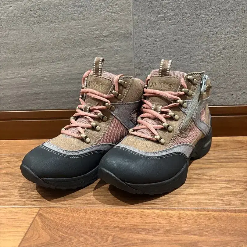 요넥스 트레킹 슈즈 23cm입니다. 다가오는 계절의 외출에 어떠신가요? - 색상: 핑크/그레이 - 디자인: 하이컷 - 지퍼: 사이드 지퍼 포함 - 밑창: 러버 솔 - 소재: 합성섬유/가죽 방문해 주셔서 감사합니다. 성별 - 여성용 신발 길이 - 하이컷 밑창 - 단단함