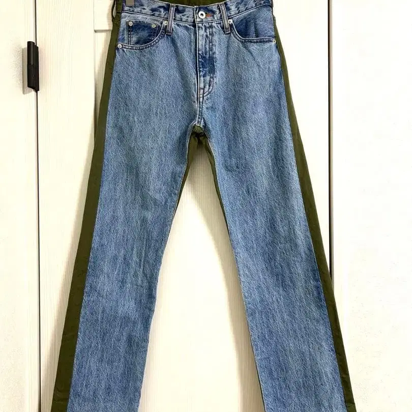 초기 레어 투데이풀 이소재 바이컬러 데님 팬츠 26인치 허리 72cm 밑위 28cm 인심 78cm 눈에 띄는 상처나 얼룩은 보이지 않습니다. 새상품급입니다. 주관적이지만 10점 만점에 9점 정도입니다.