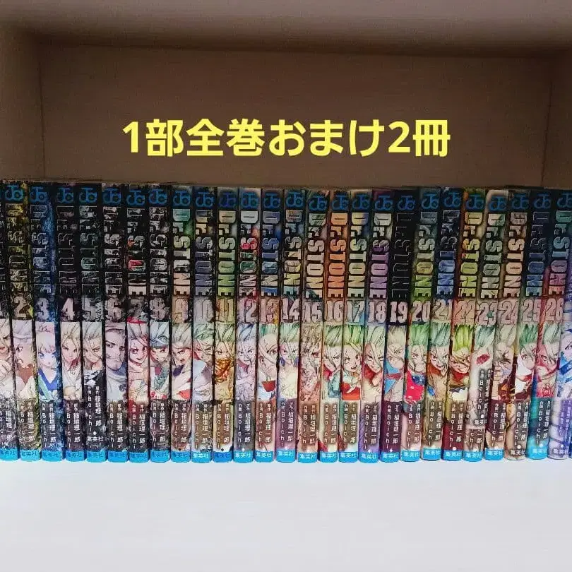인기 코믹스 닥터 스톤 1~26권과 관련 도서 2권을 포함한 28권 세트입니다. 1부 완결인 26권까지입니다. 27권은 미구매입니다. 전반적으로 일광화상도 적고 상태가 좋다고 생각합니다. 방수 대책을 하여 포장해 드리겠습니다. 낱개 판매, 가격 인하는 불가합니다. 즉시 구매 ok입니다.