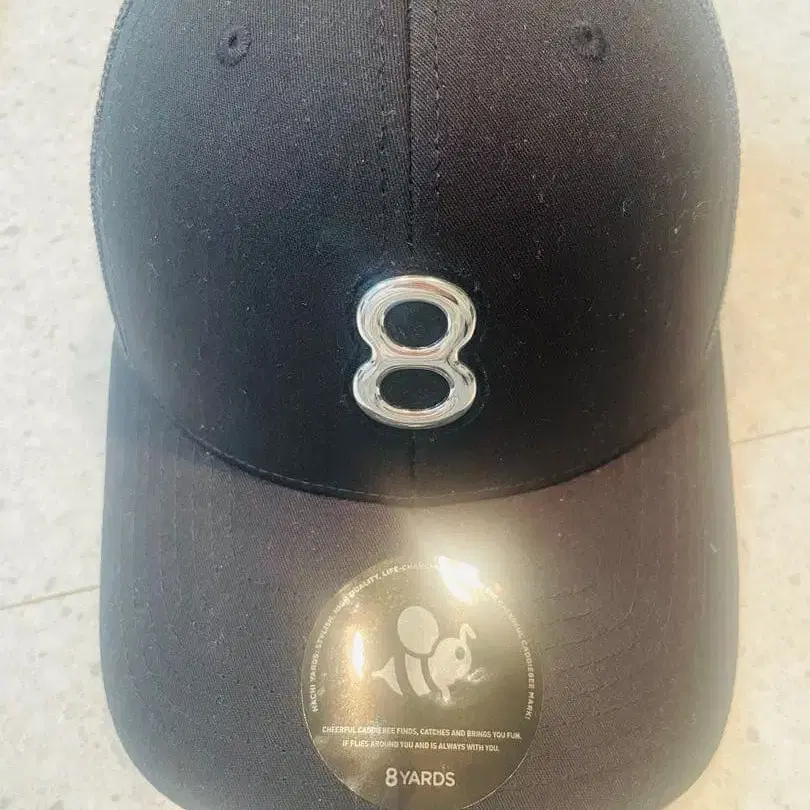 프론트에 숫자 8 자수가 들어간 블랙 캡입니다. 폴리에스테르와 코튼 혼합 소재로 쾌적한 착용감을 제공합니다.