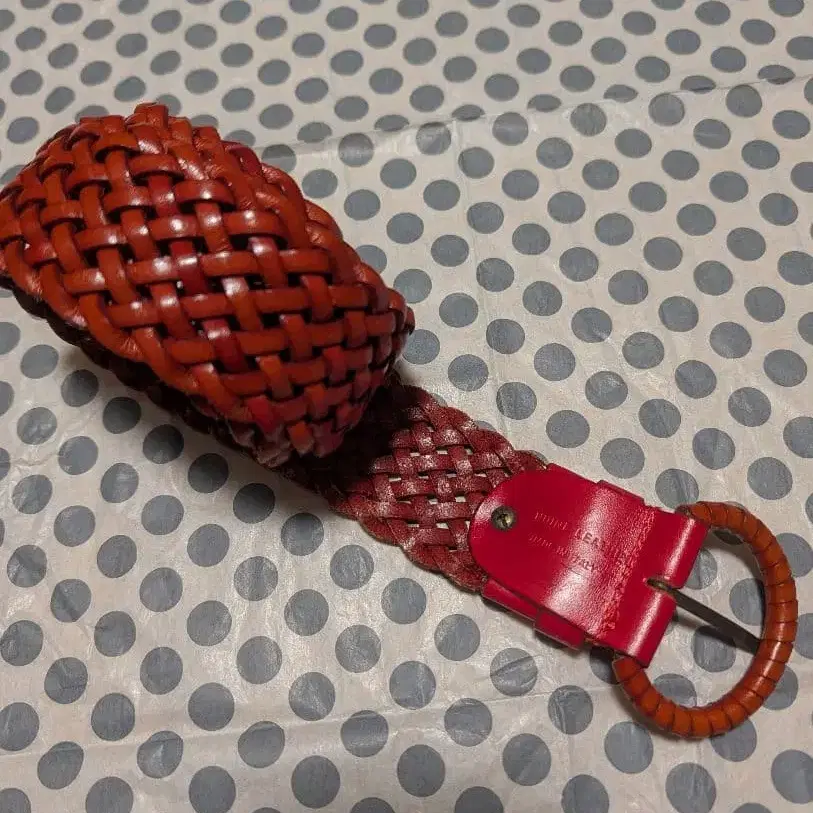 빨간색 뜨개질 가죽 벨트, 금속 버클 포함이며
