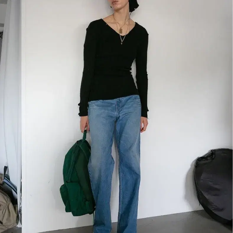 PERVERZE 퍼버즈 V넥 리브 니트 블랙