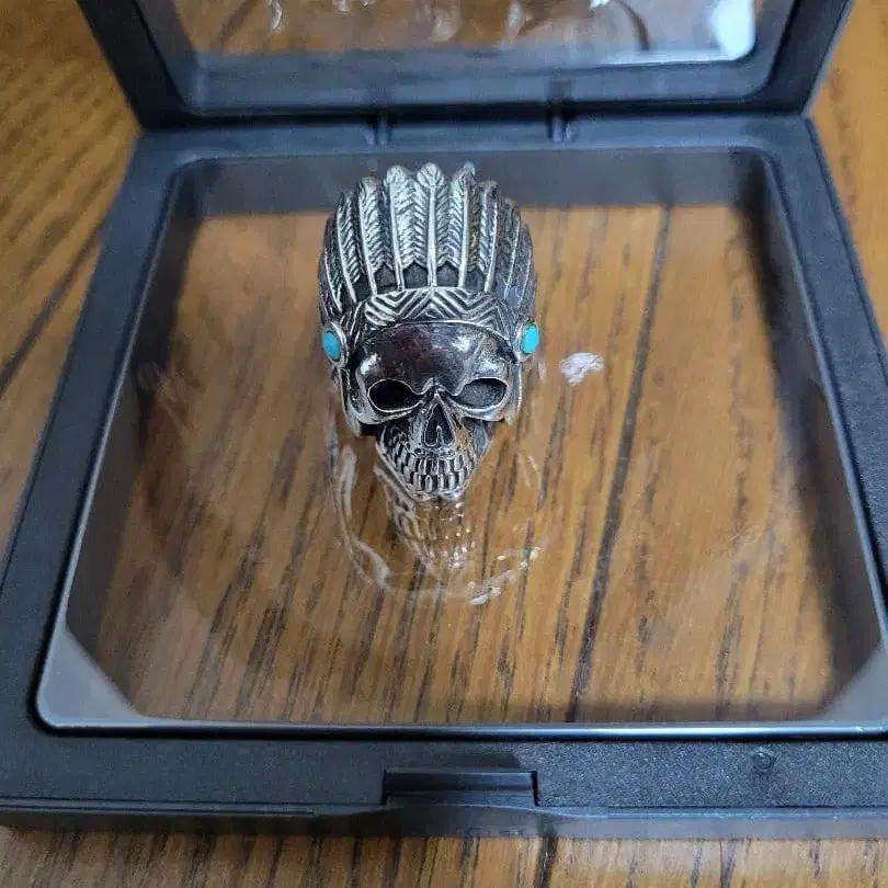인디언 헤드 디자인의 스컬 반지, 터콰이즈 장식 포함. 실버 925 - 디자인: 스컬 반지, 인디언 헤드 디자인 - 소재: 실버 - 장식: 터콰이즈 스톤 2개 부착 - 사이즈: 23호 약 28g 스컬 해골 방문해 주셔서 감사합니다. 재질 - 실버