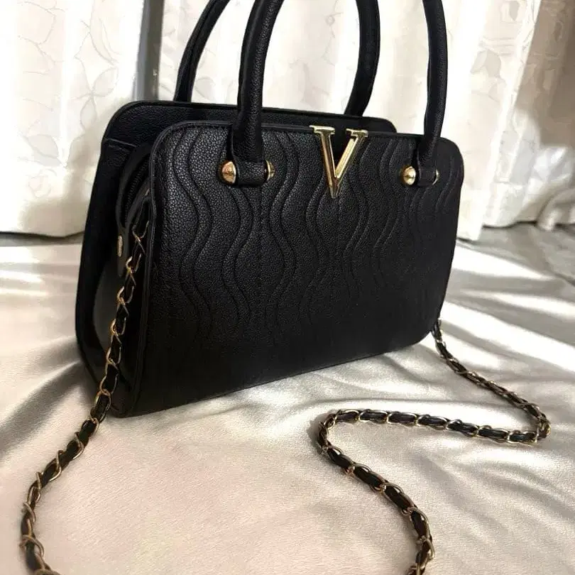 ◆ 미사용 새상품 ◆ 물결 무늬의 블랙 숄더백, 체인 스트랩으로 스타일리시합니다. - 색상: 블랙 - 디자인: 물결 무늬 - 핸들: 2개 핸들 - 스트랩: 체인 스트랩 - 내부 포켓: 칸막이 포함 - 외부 포켓: 지퍼 포켓 사이즈 28 x 20 x 13 방문해 주셔서 감사합니다.
