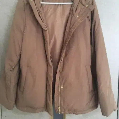 브라운 다운 자켓 후드 부착 y2k