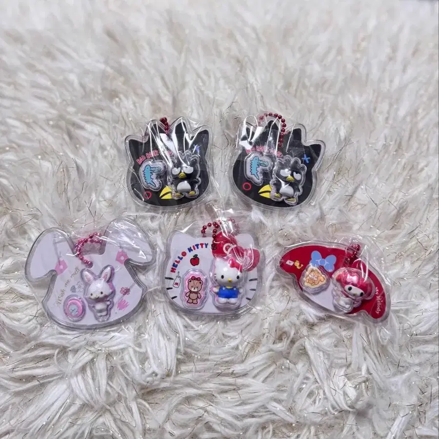 산리오 패키지 참 - 캐릭터: 헬로키티, 마이멜로디, 위시미멜, 배드마츠마루 x 2 - 디자인: 아크릴 키링 - 종류: 세트 - 수량: 5개 세트 낱개 판매 불가입니다. 방문해 주셔서 감사합니다.