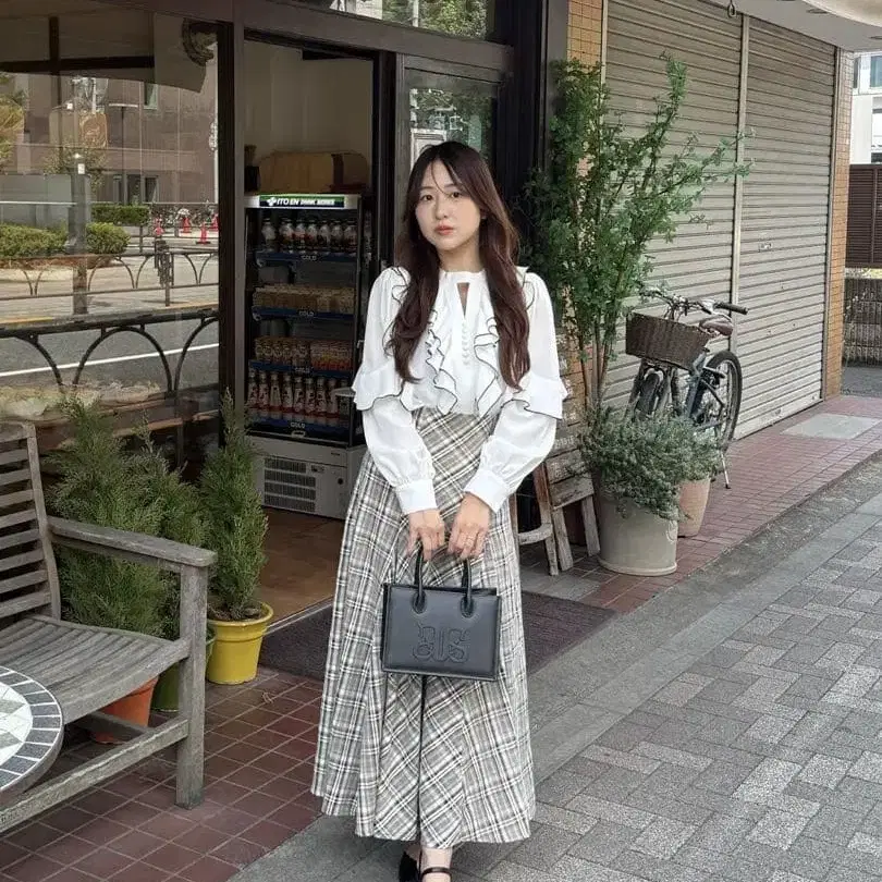 체크 플레어 롱 SK 입니다.