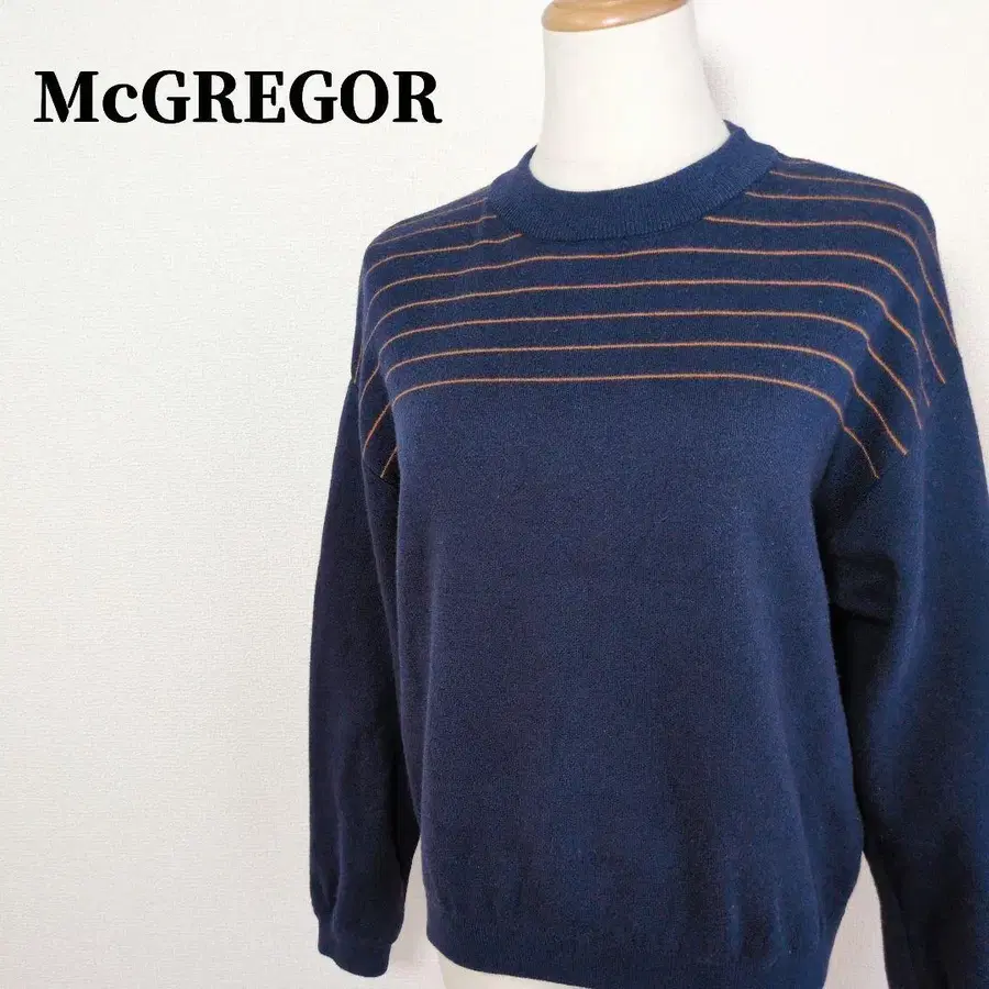 맥그레거 보더 무늬 크루넥 스웨터 네이비 M