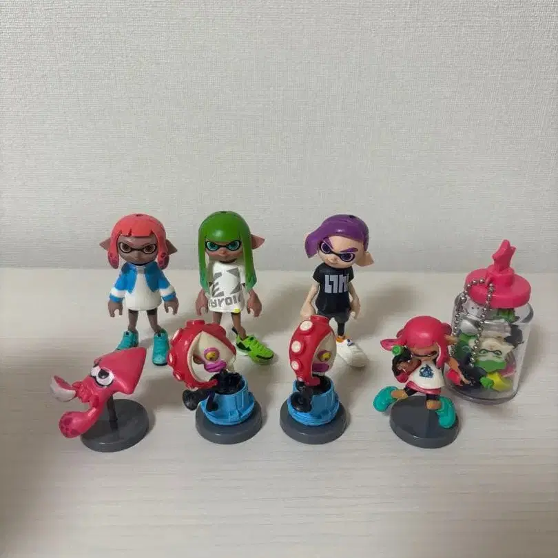 자동 번역되었어요. 원문보기스프라툰 액션 피규어 세트, 캐주얼 의상과 오징어형 피규어 포함.