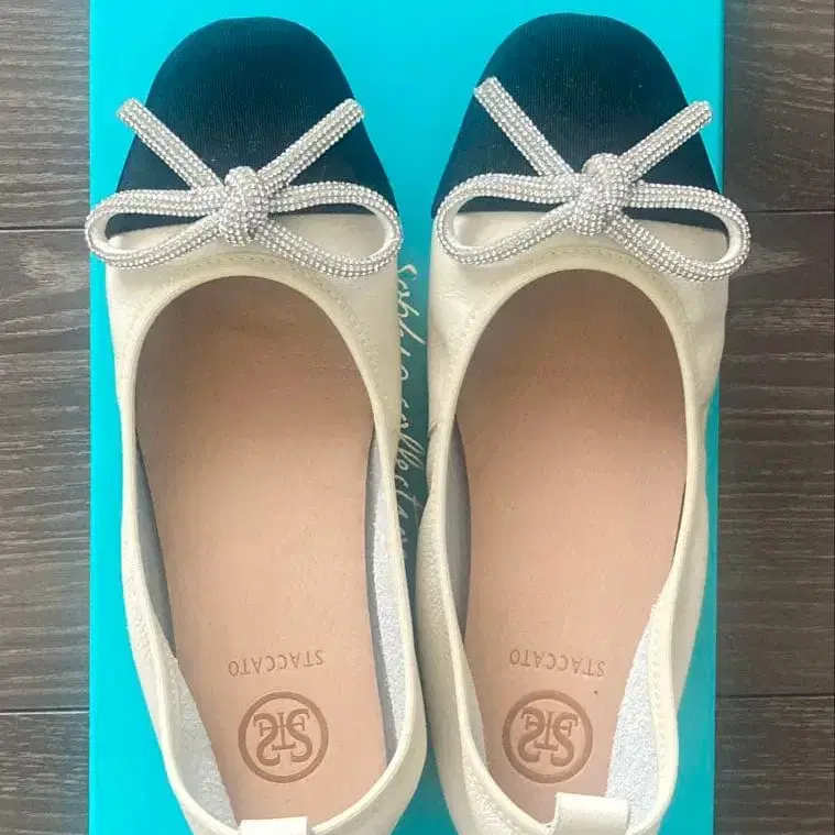 비즈 장식의 리본 포함 플랫슈즈입니다. - 브랜드: STACCATO - 색상: 베이지 and 블랙 - 디자인: 리본 포함 - 갑재: 소가죽, 폴리에스테르 - 장식: 비즈 포함 - 사이즈: 22cm 정가 18,920엔 (세금 포함) 반짝이는 리본이 귀엽고, 베이지 & 블랙으로 고급스러운 슈즈입니다. 포멀한 자리나 업무에도 사용할 수 있다고 생각합니다. 2회 정도 사용했기 때문에, 미사용에 가까운 상태로 하고 있습니다. 깨끗한 상태이지만, 외부에서 사용했으며 집에서 장기 보관했던 것이므로, 양해하신 후 구매 부탁드립니다. 상자와 신발 주머니도 있습니다. 색상 - 베이지 계열 사이즈 - 22cm