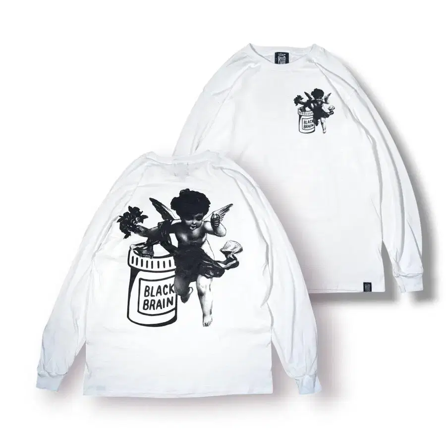 천사 그래픽과 [ BLACK BRAIN ] 텍스트가 특징인 화이트 긴팔 티셔츠. - 색상: 화이트 - 디자인: 천사 그래픽 프린트 - 텍스트: BLACK BRAIN - 소매 길이: 긴팔 방문해 주셔서 감사합니다. 사이즈 - XL(LL)