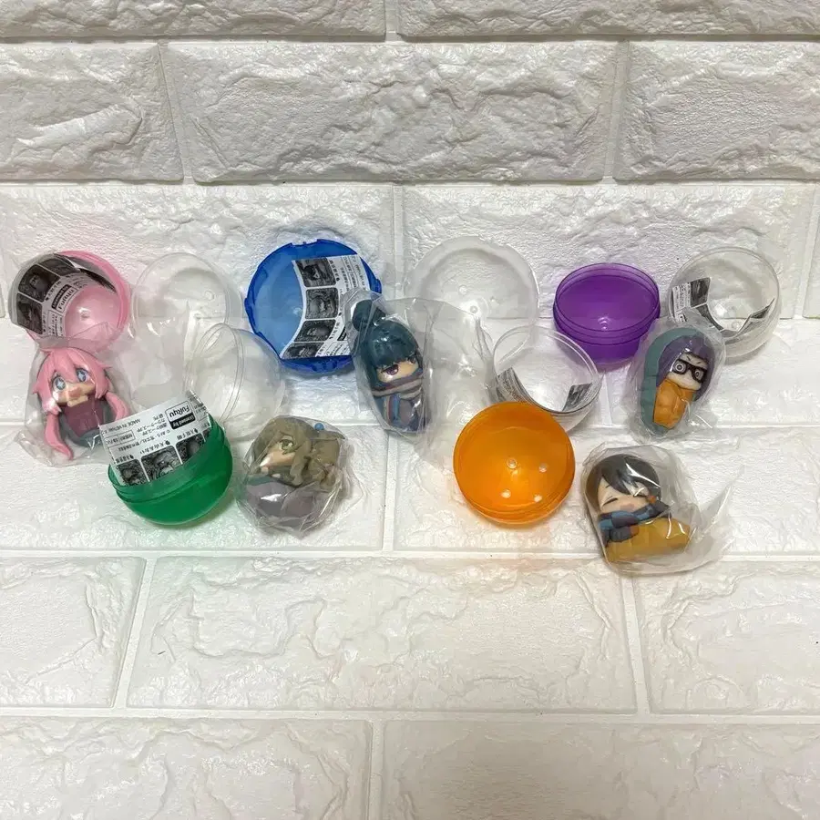 ⭐️ ゆるキャン 애니메이션 캐릭터 피규어 5개가 들어있는 캡슐 토이 세트.