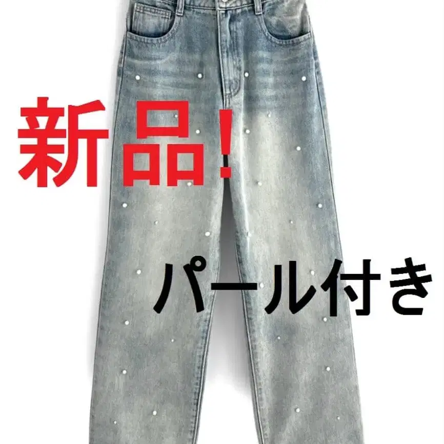 새상품 데님 펄 장식 스트레이트