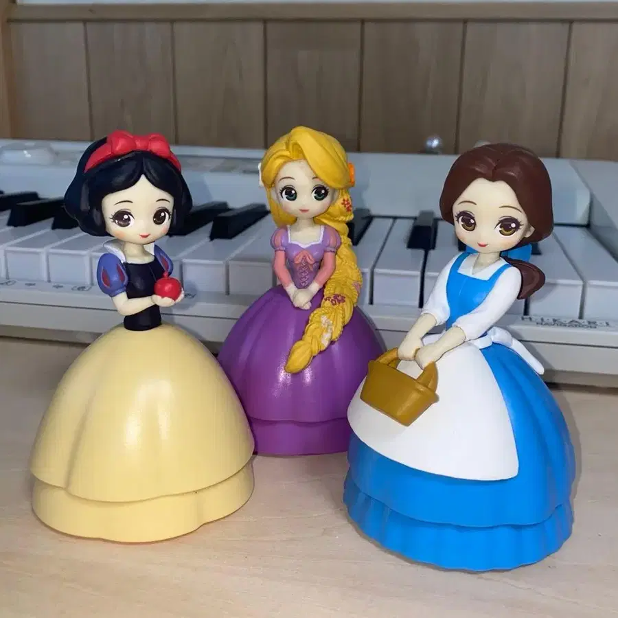 [ 사이즈 ] 약 12 x 8cm (조립 시) 디즈니 백설공주, 라푼젤, 벨 피규어입니다. 가챠가챠로 얻었습니다. 개봉 완료했지만 흠집이나 얼룩은 없습니다. 발송 시 만약을 위해 닦아서 발송하겠습니다! 즉시 구매, 묶음 구매 가능합니다!